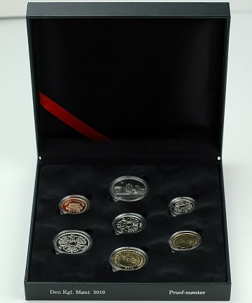 I original æske der indeholder 50 øre samt 1, 2, 5, 10 og 20 kr fra 2010. Desuden indeholder æsken en original en kopi af en medalje af sterlingsølv udgivet af Christian VI i 1739 i forbindelse m. den højtidelige indvielse af flådens første tørdok.