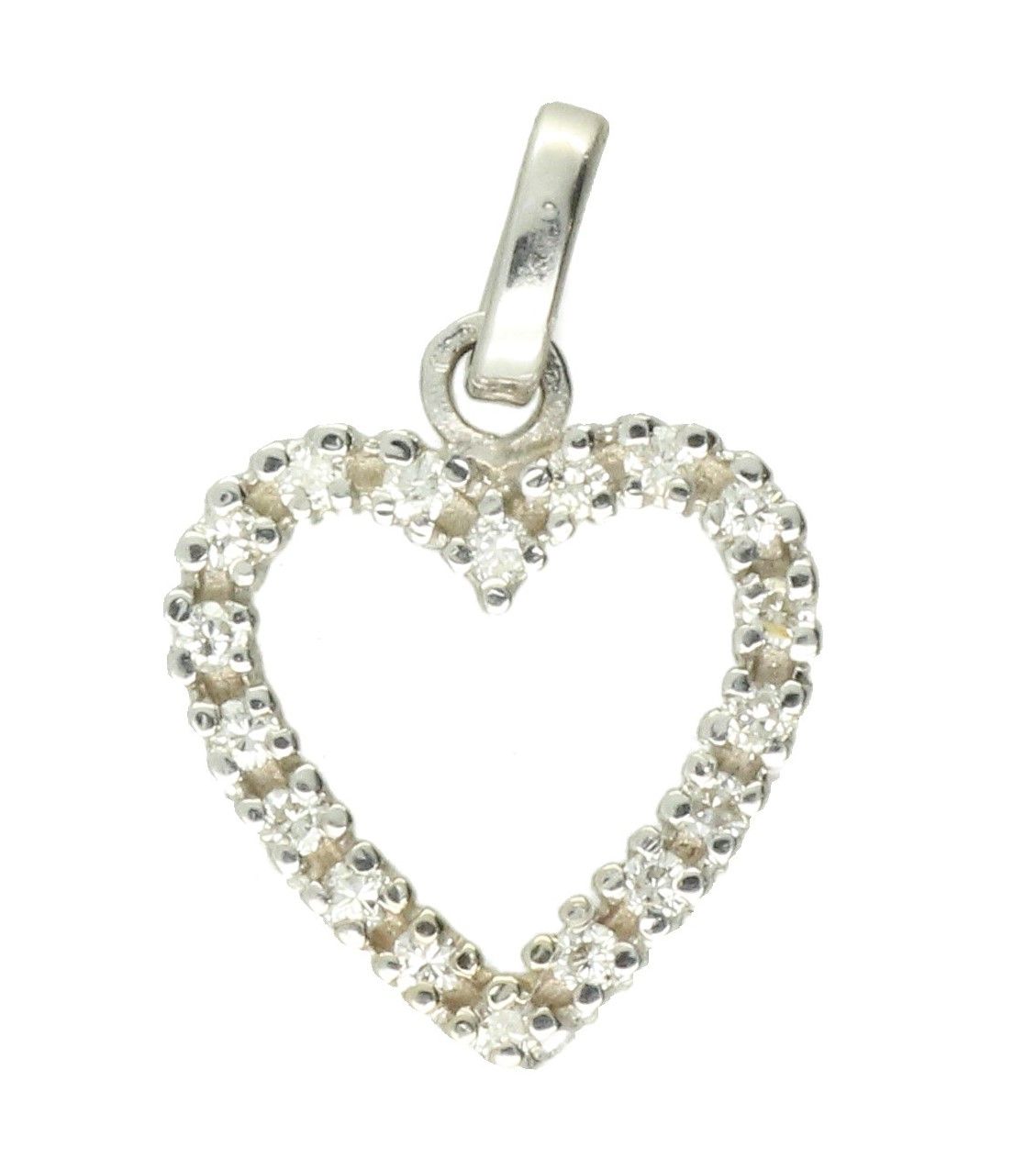 Hjertevedhæng af 14 kt. hvidguld, i alt ca. 0,18 ct.
