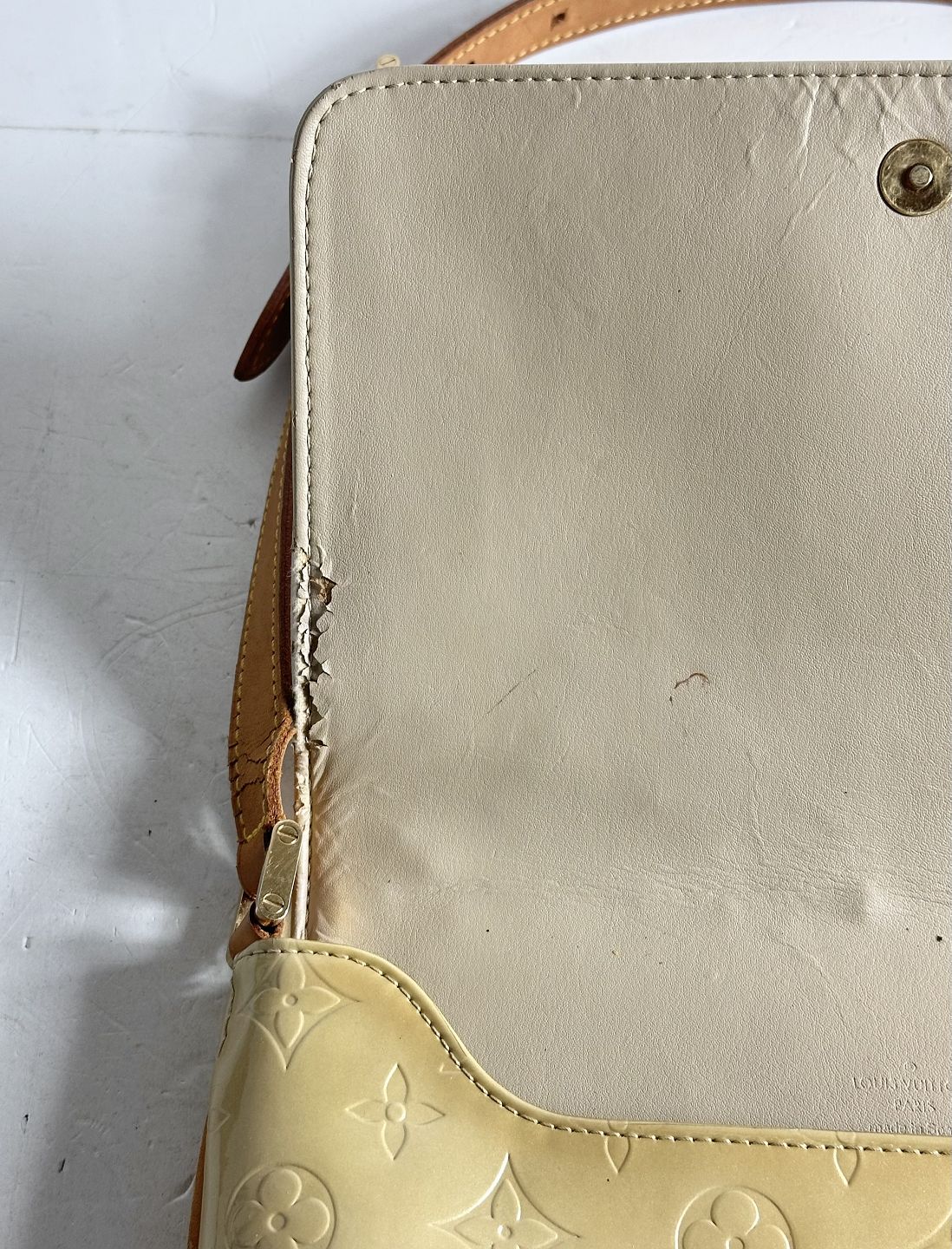 Fremstår brugt med krakeleringer på læderrem samt indvendigt.