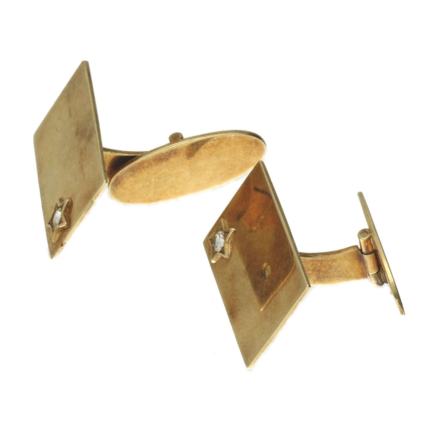 Hugo Grün - Par knude manchetknapper af 14 kt. guld fattet med klare sten