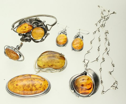 Samling smykker af sølv fattet med rav (7)