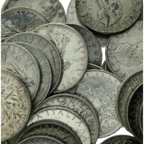 Forskellige mønter og lande. 3 kg finsølv - reguleres til dagens pris