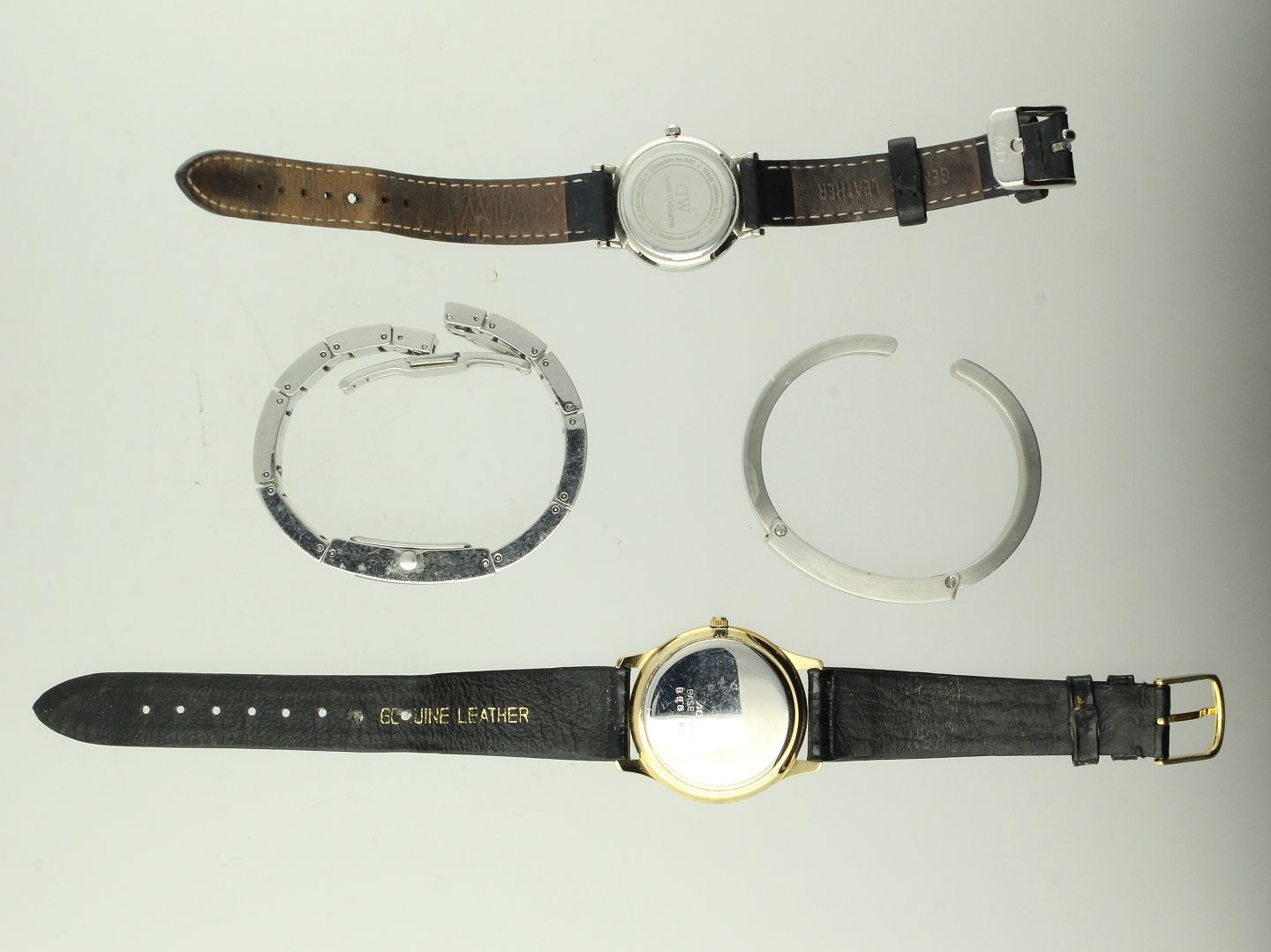 Daniel Wellington m.fl. - Tre armbåndsure samt armring af metal og forgyldt metal.
