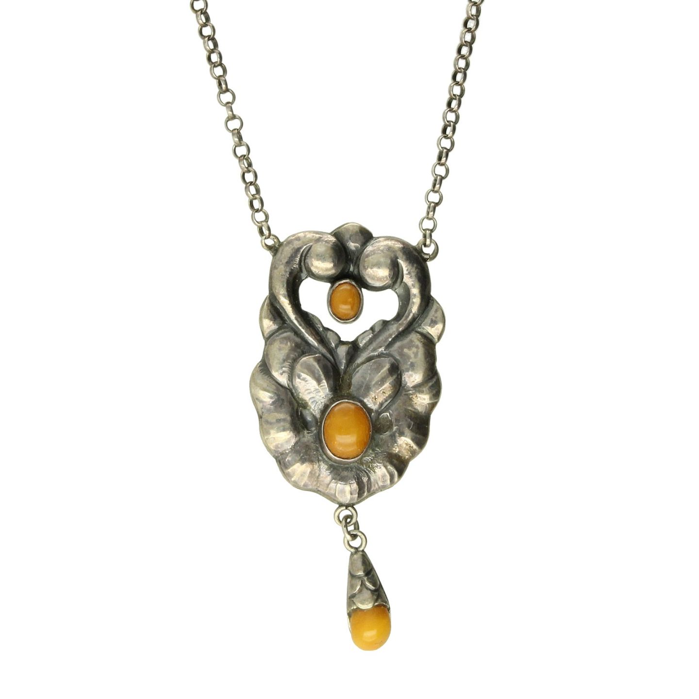 Skønvirke halskæde af 826 sølv fattet med rav
