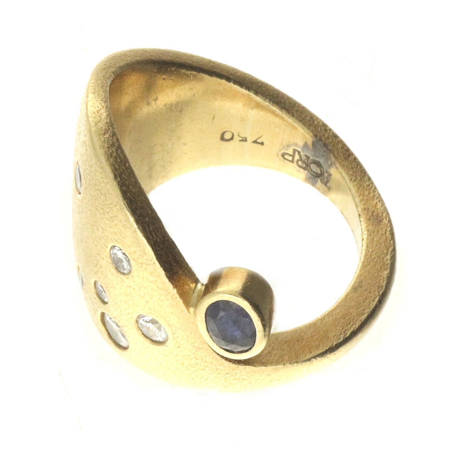 Lillefinger ring af 18 kt. guld fattet med syv brillanter på ca. 0.16 ct. samt en safir på ca. 0.18 ct.