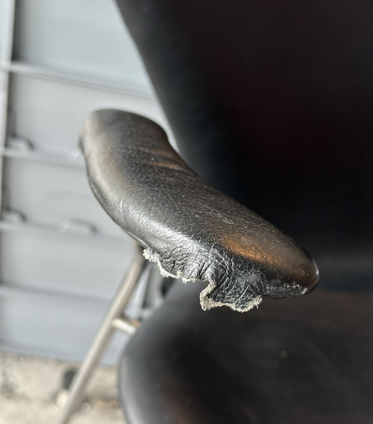 Arne Jacobsen - 'Syver' armstol betrukket med sort læder, stel af forkromet stålrør. Gammel siddehøjde: 44 cm. Fremstillet hos Fritz Hansen, i 1987.