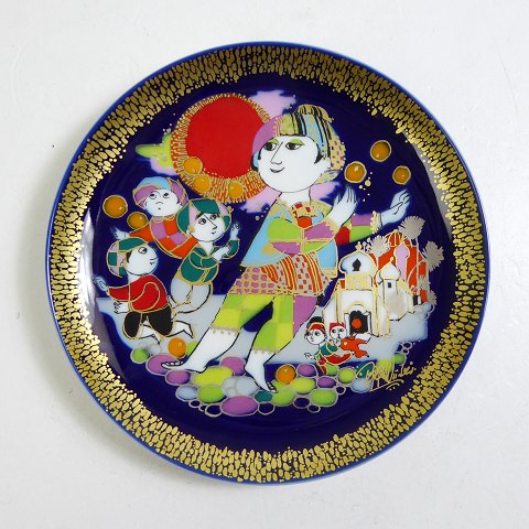 Rosenthal Bjørn Wiinblad-platte, Aladdin II, multifarvet og guld, 16,3 cm