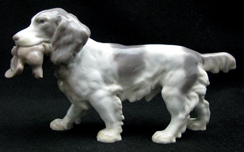 Bing & Grøndahl #2061, Spaniel med fugl , 25 cm., Design: Laurits Jensen