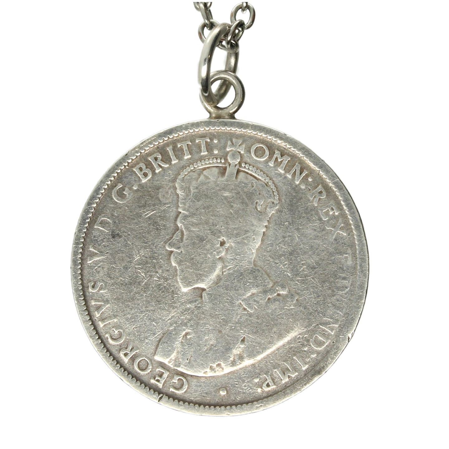 Australien 1912 sølv mønt fattet i øsken af sølv inkl. kæde