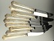 9 knive med skafter af sølv, L. 20,5 cm. Samt 2 smørknive, L. ca. 15,5 cm. Samlet vægt på dele med stål: ca. 690 gr.