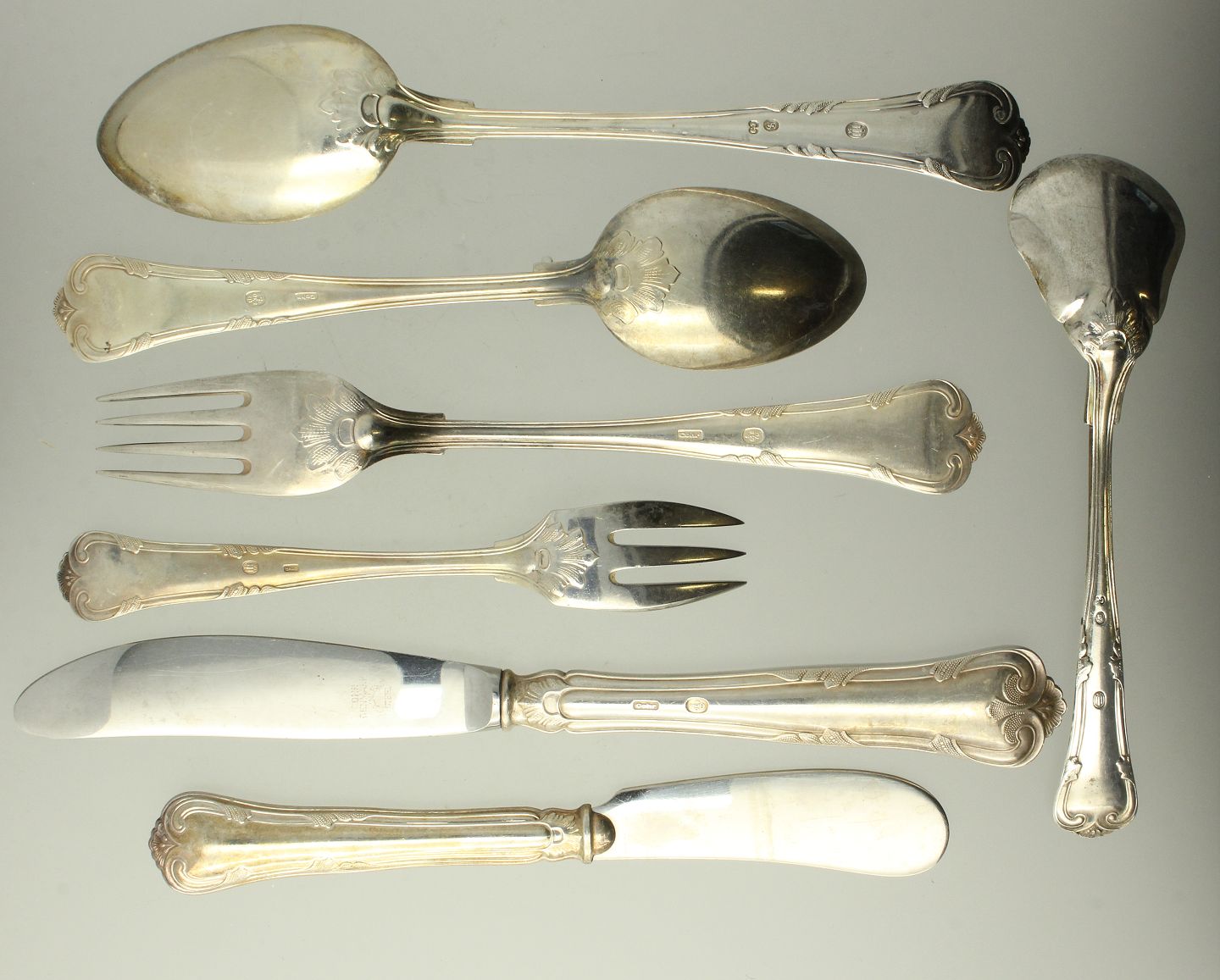 Carl M. Cohr - 43 dele bestik af tretårnet sølv bestående af: