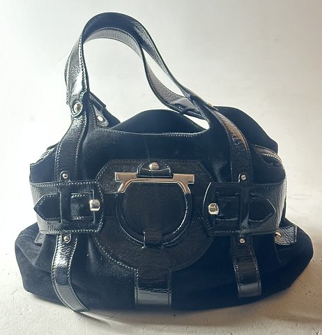 Salvatore Ferragamo - Håndtaske af sort ruskind / sort læder