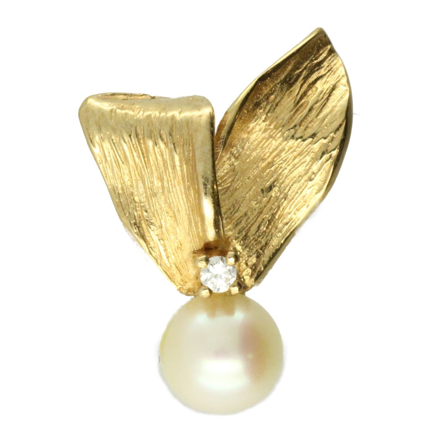 Vedhæng af 14 kt. guld fattet med kulturperle samt brillant på ca. 0.05 ct.