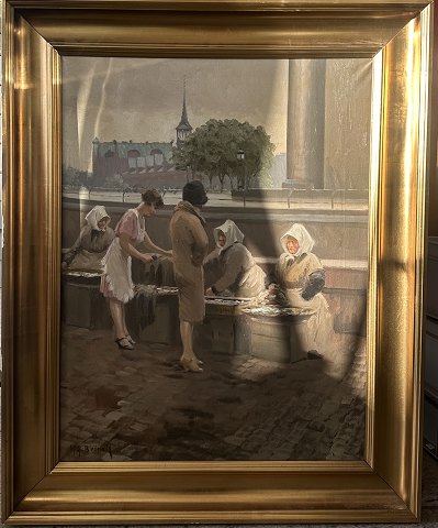 H.A. Brinck - 'Fiskerkoner ved Gl. Strand' olie på lærred