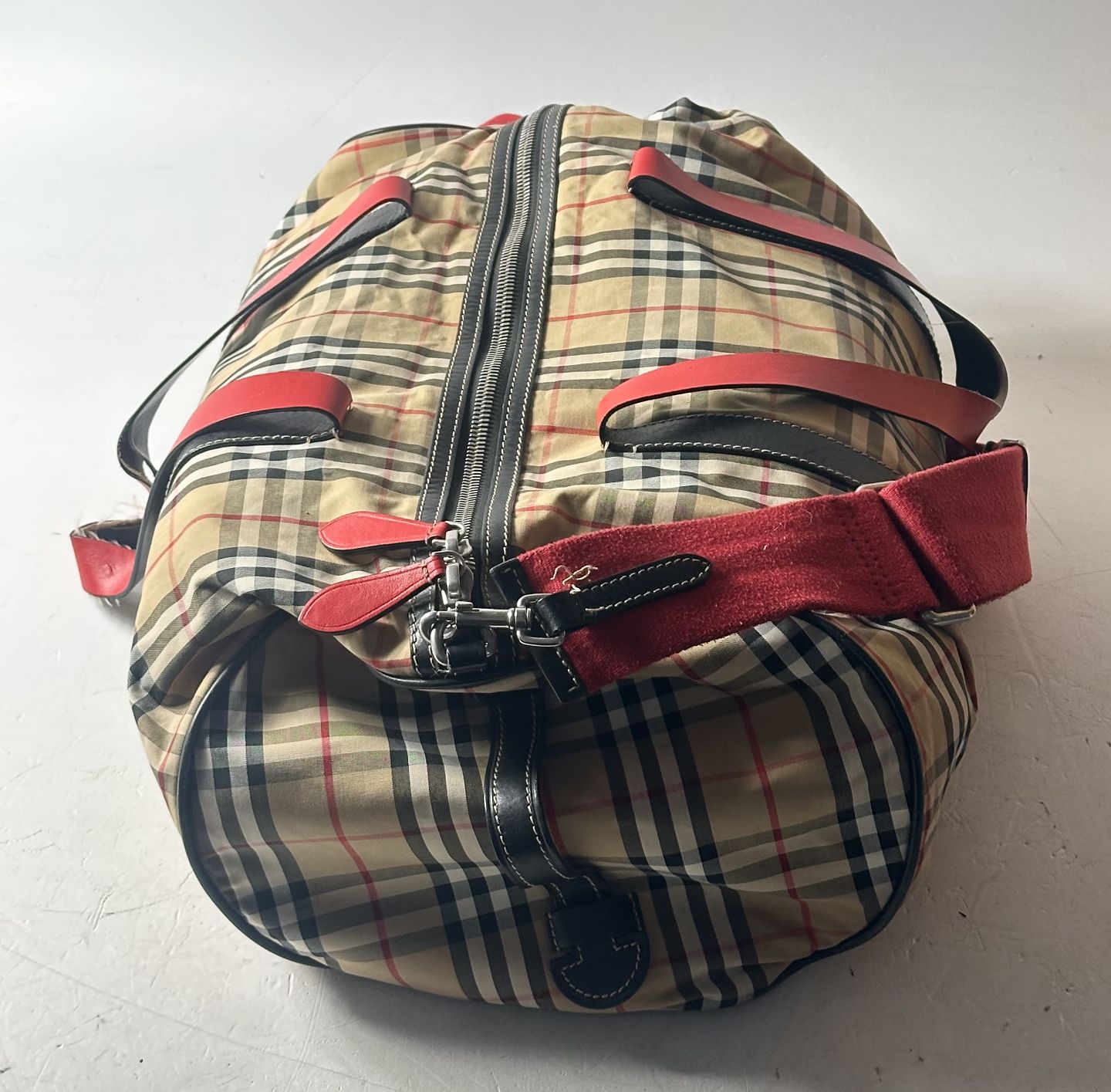 Burberry - Kennedy vintage taske af ternet nylon, justerbar rem af rødt stof.
