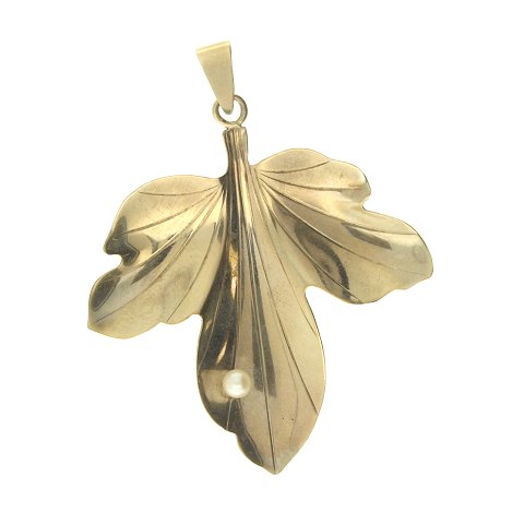 Hermann Siersbøl - Blad vedhæng af 8 kt. guld fattet med perle