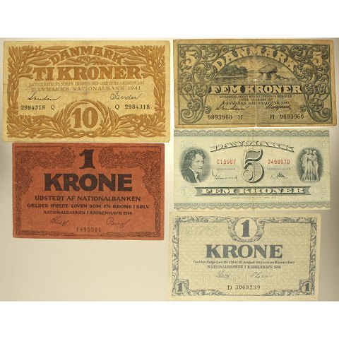 Samling diverse danske pengesedler (5)