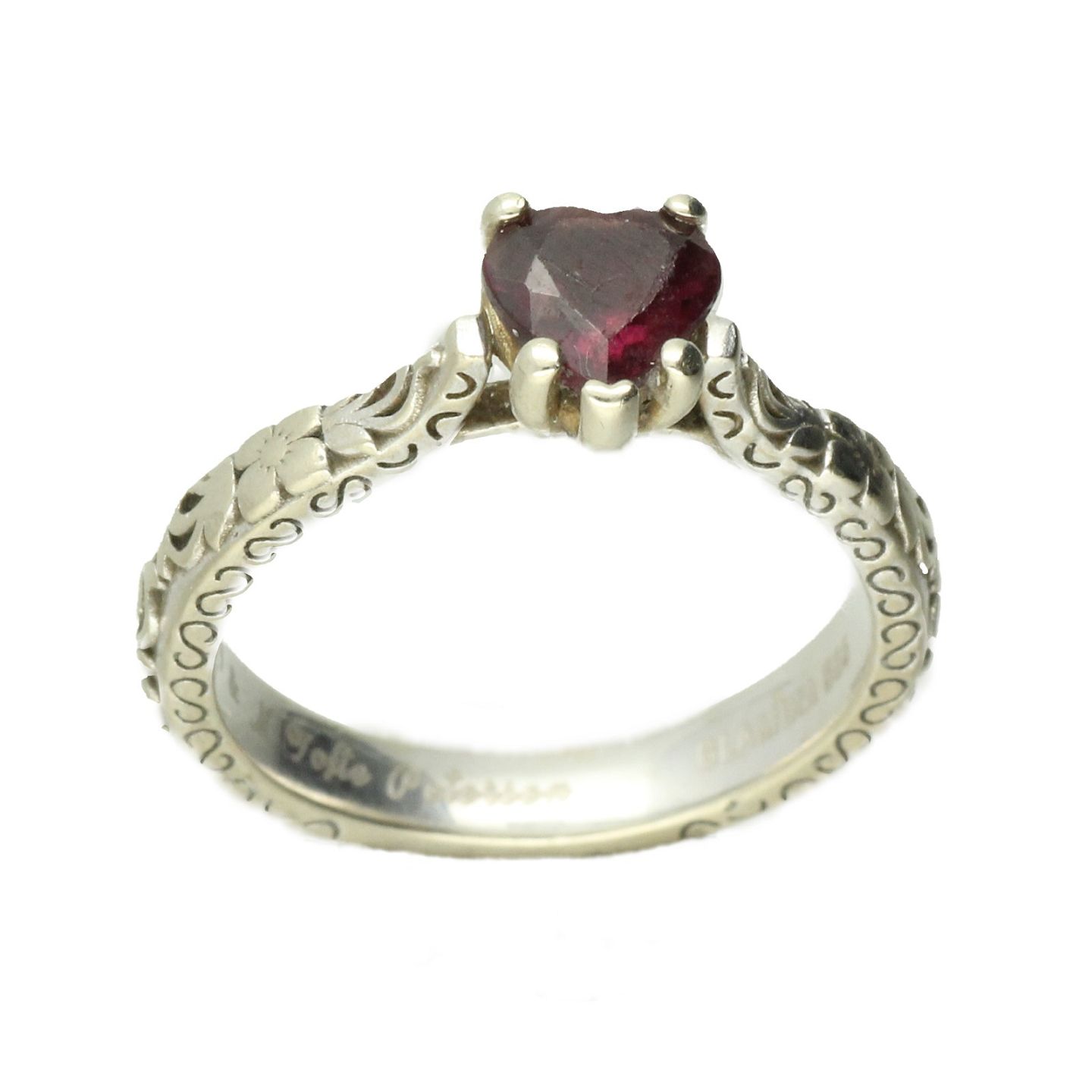 Ring af 14 kt. hvidguld fattet med hjertesleben rhodolit granat