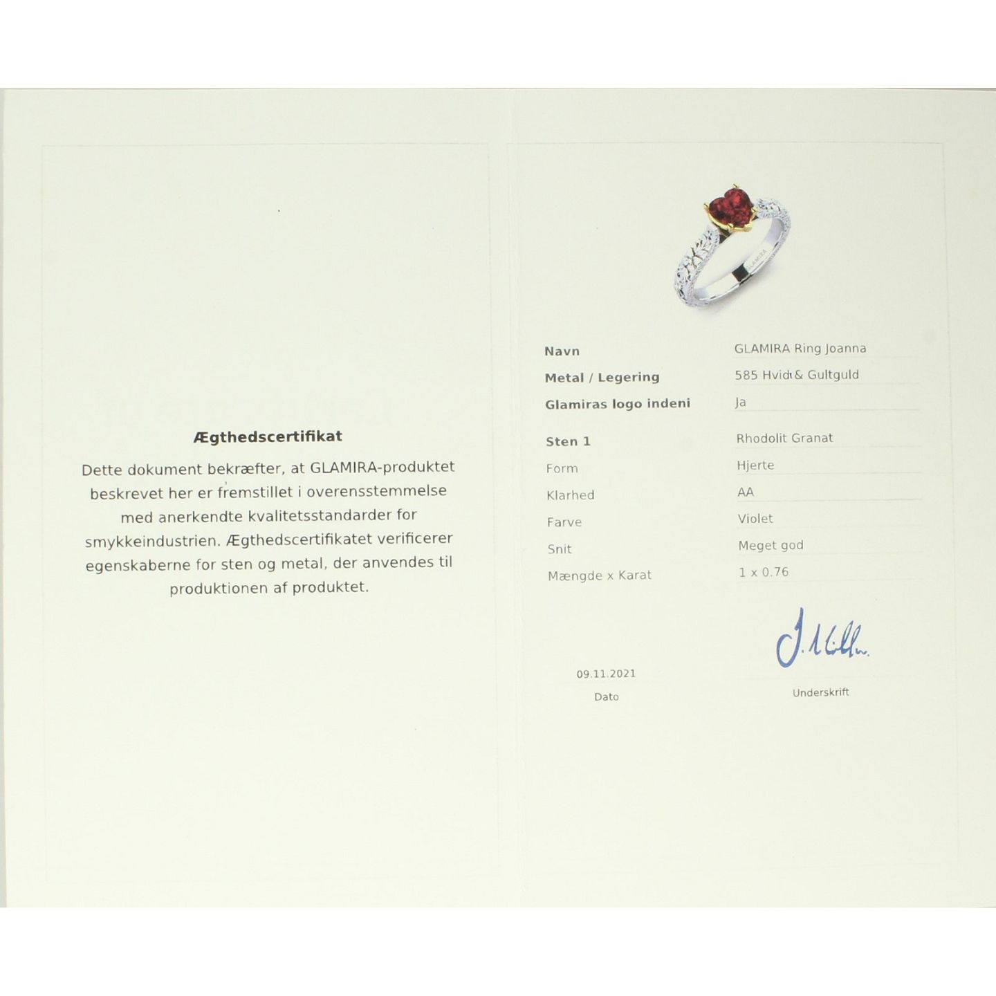 Ring af 14 kt. hvidguld fattet med hjertesleben rhodolit granat