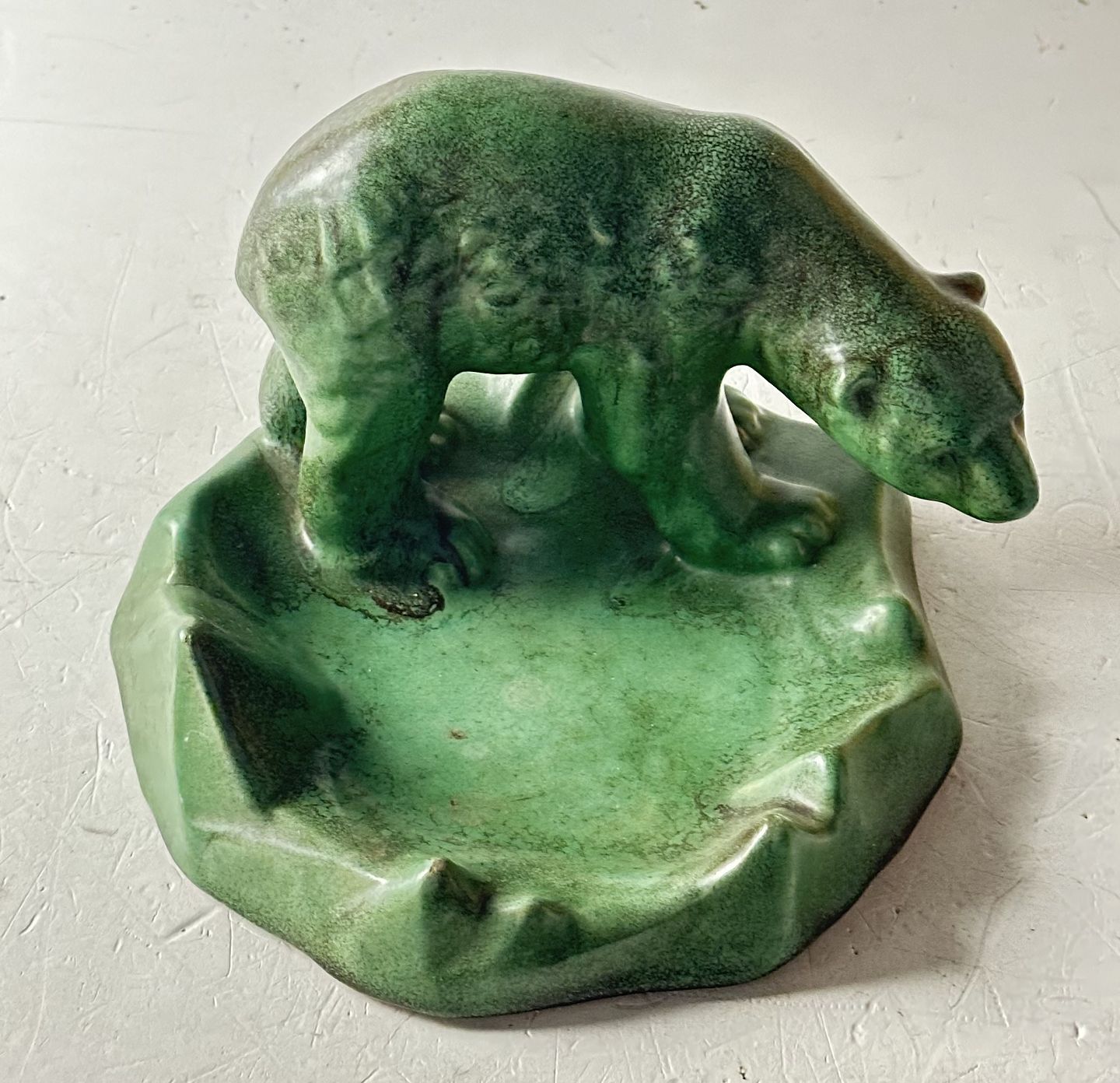 Michael Andersen, Bornholm - Isbjørn på skål af grøn glaseret stentøj