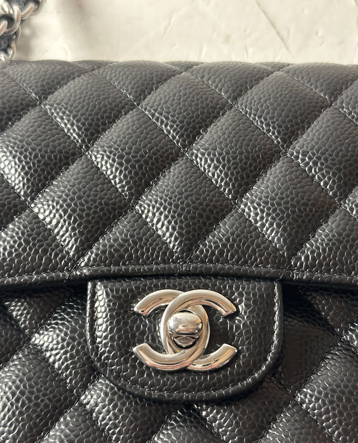 Chanel - Classic Double Flap taske str. small taske af sort quiltet caviar læder med sølv hardware, dobbelt kædehank, en udvendig baglomme, CC drejelås, indvendige lommer og bordeaux læder.