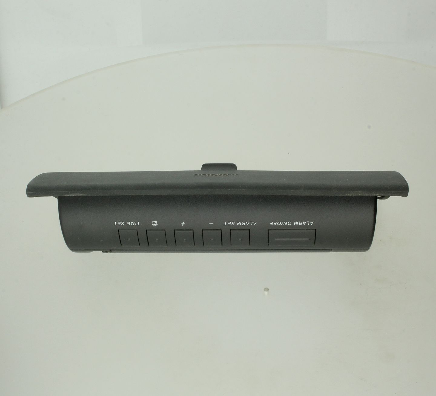 Georg Jensen - Wave Design Alarmclock. Digitalt display der viser klokken, alarmtidspunkt og indikator for om alarmen er tændt eller slukket. Derudover viser den lokal tid eller alternativ tid, hvilket gør uret ideelt som rejsevækkeur, da man kan følge to forskellige tidszoner samtidigt. Mål: 15,7x7cm.