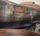 Udført i scotchgrain med besætninger af brunt læder. Klassisk ternet for indvendigt.