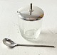 E. Dragsted. Marmeladekrukke af glas med låg og ske af sterlingsølv