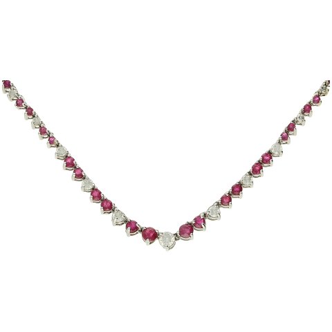 Halskæde af hvidguld 14kt. fattet med diamanter ialt: 1,45ct. og rubiner ialt: 2,9ct. - IGL-certificeret.