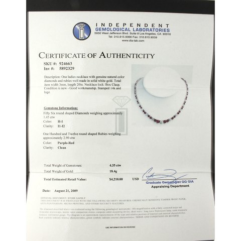 Halskæde af hvidguld 14kt. fattet med diamanter og rubiner - IGL-certificeret