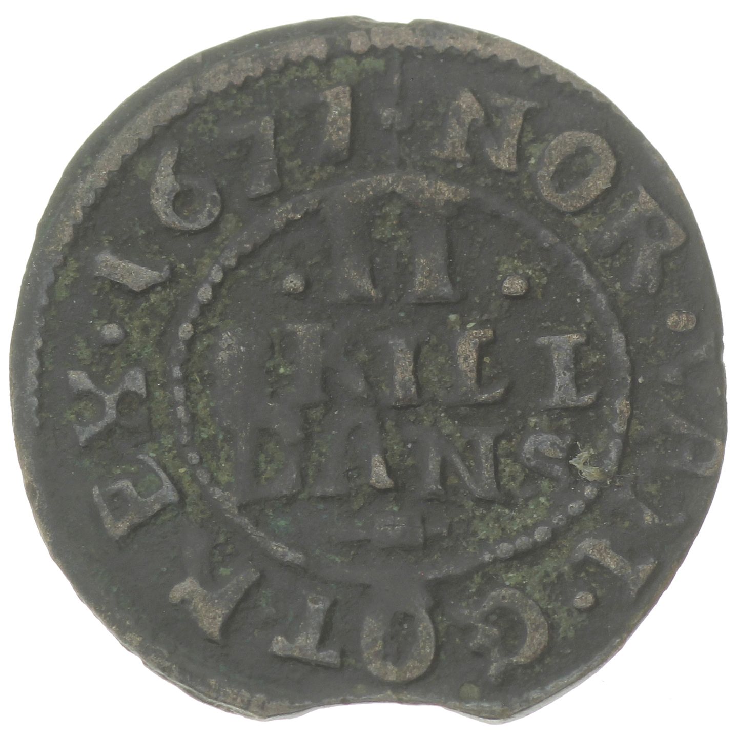 Christian V - 2 skilling - 1677 - Sølv - Sieg 7.1, H 74 A