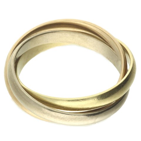 Tredelt ring udført af 14 kt. trefarvet guld. Ringstr: 57. Vægt: ca. 6,45 gr.