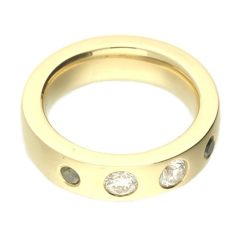 Alliancering udført af 14 kt. guld fattet med to brillanter på hver 0.25 ct. og to sorte brillanter på hver ca. 0.03 ct. Ringstr: 53. Vægt: ca. 12,88 gr.
