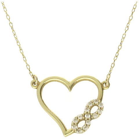Halskæde af guld 14kt. med integreret vedhæng i form af hjerte fattet med klare sten.