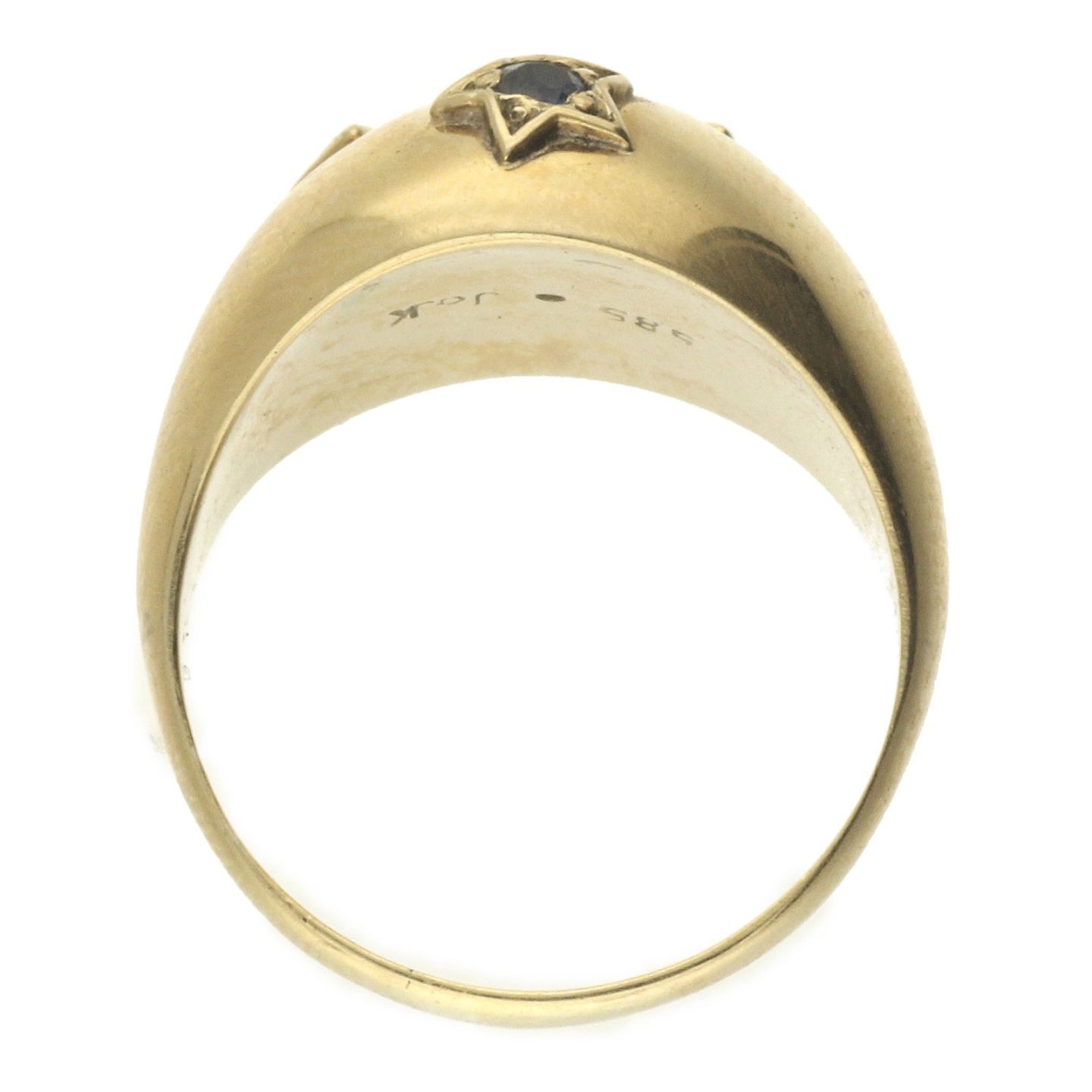 Ring udført af 14 kt. guld fattet med blå sten. Ringstr: 50. Vægt: ca. 3,15 gr.