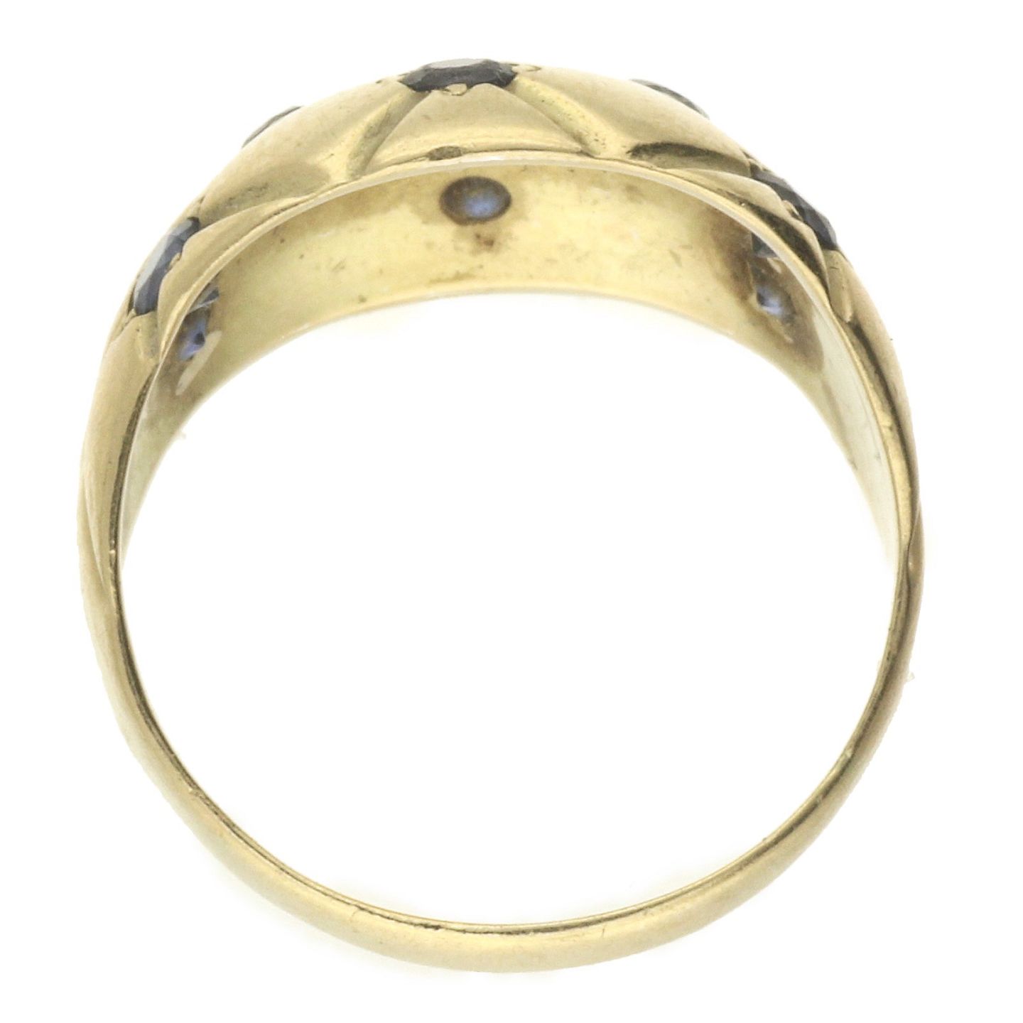 Ring udført af 14 kt. guld fattet med blå sten. Ringstr: 51. Vægt: ca. 4,30 gr.