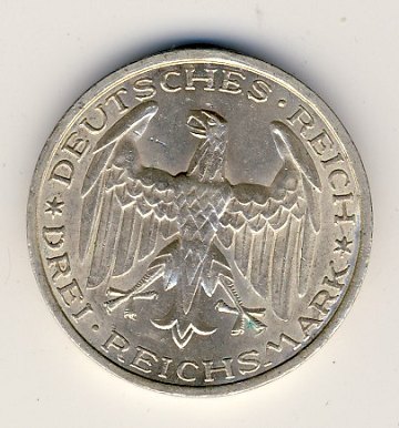 Tyskland - 3 mark 1927 - A - Marburg - sølv - KM# 53