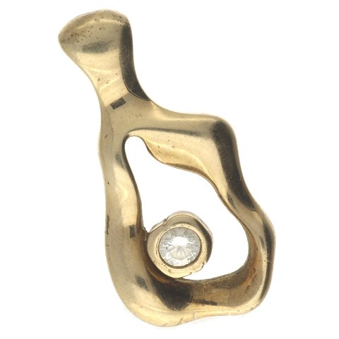 Vedhæng af 8 kt. guld fattet med klar sten. L. ca. 3,6 cm. Vægt: ca. 6,40 gr.