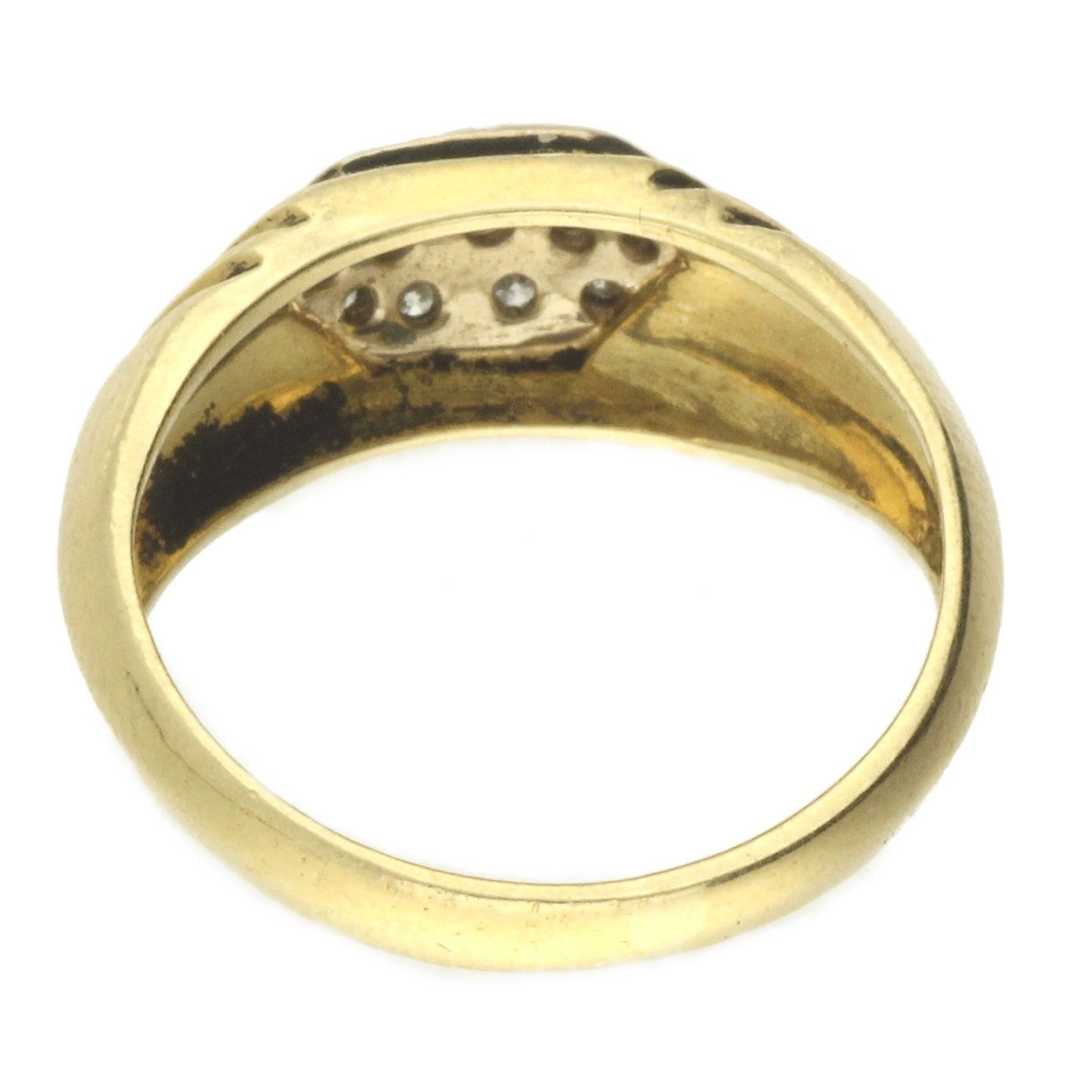 Ring udført af 18 kt. guld fattet med 13 brillanter i alt ca. 0.13 ct. Ringstr: 52,5. Vægt: ca. 4,60 gr.