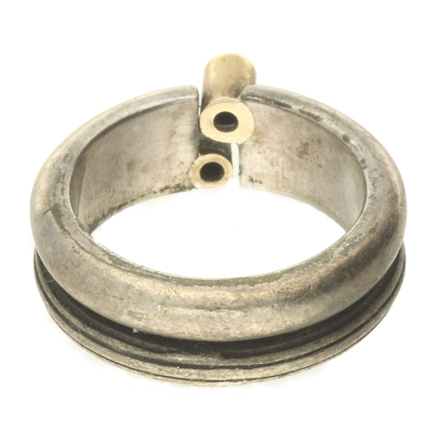 Ring af sterling sølv og guld fattet med to brillanter på i alt ca. 0.04 ct. Ringstr: 53,5. Vægt: ca. 9,6 gr.