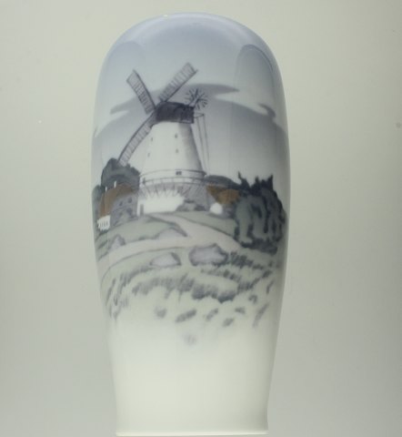 Royal Copenhagen - Vase med dybbøl mølle dessin nr. 4568. H. 17 cm. 1. sortering.