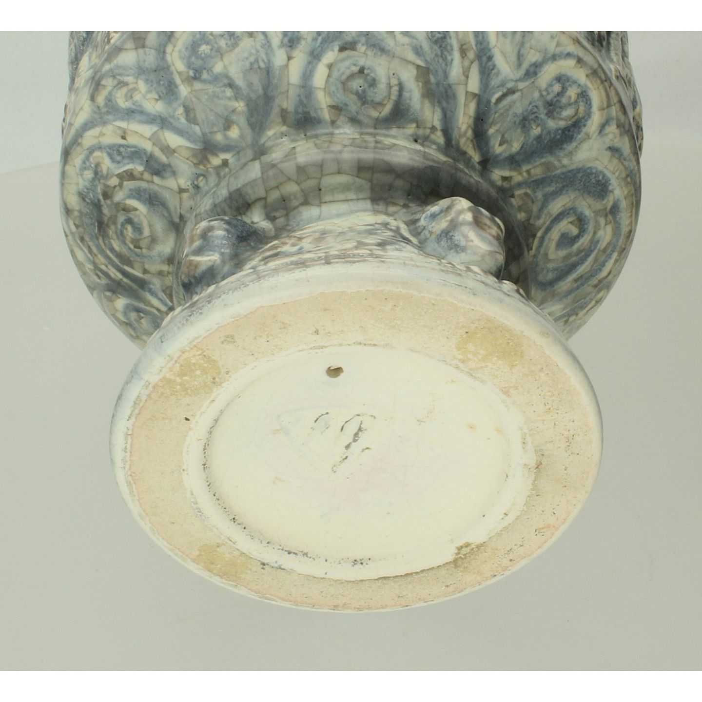 Michael Andersen - Døbefont nr. 46451 af stentøj med motiv af Åkirkeby Bornholm. H. 11,5 Ø. 11,5 cm. Signeret under bunden.