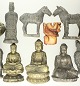 En samling asiatiske figurer i metal og terracotta. H. ca. 5-11,5 cm.