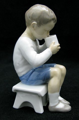 Bing & Grøndahl #1713 "Victor" Dreng drikker af krus 13cm. Design : Ingeborg Plockross Irminger.