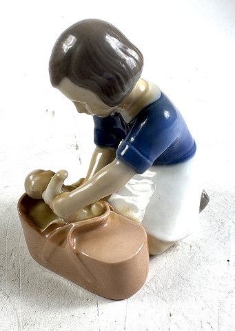 Bing & Grøndahl - Pige med dukke - figur nr. 2307. H. 12 cm. 2. sortering.