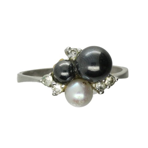 Ring udført af sterling sølv fattet med klare sten samt perler. Ringstr: 56. Vægt: ca. 3,5 gr.