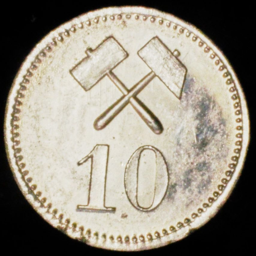 Aktieselskabet Grønlandsk Minedrift udvandt blandt andet kobber i Julianehåb området. Firmaet fik fremstillet dette private betalingstegn hos L. Chr. Lauer i Nürnberg.