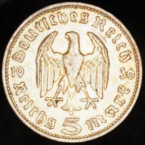 Tyskland - 5 Reichsmark - 1936 - J - Paul von Hindenburg - Sølv - KM# 86