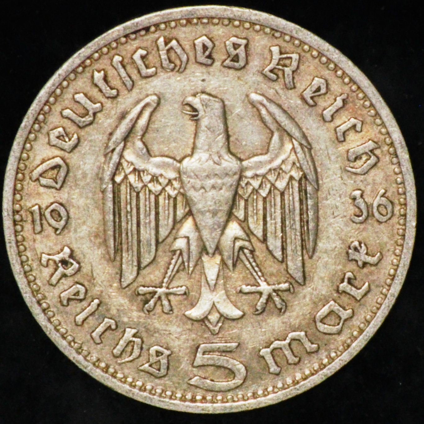 Tyskland - 5 Reichsmark - 1936 - D - Paul von Hindenburg - Sølv - KM# 86