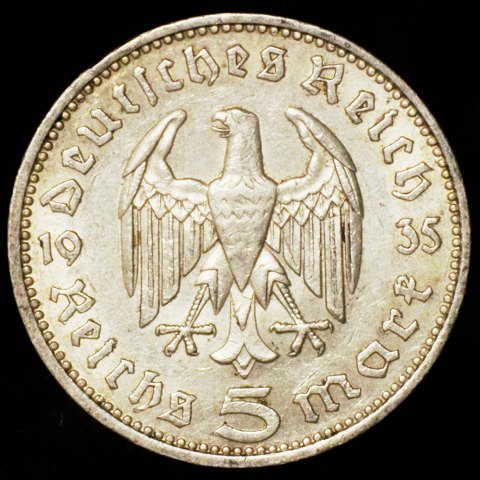 Tyskland - 5 Reichsmark - 1935 - J - Paul von Hindenburg - Sølv - KM# 86
